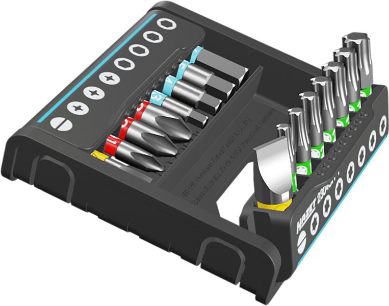 00HAZET SmartHolder z 16 bitami, krótkie 2304SH-1 ∙ Zabieraksześciokątny masywny 1/4 cala (6,3 mm) ∙ Profil szczelinowy,Profil gniazdo krzyżowe PH, Profil z gniazdem sześciokątnym,Profil wewnętrzny TORX® ∙ 16‑częściowy ∙ PH1 – PH3 ∙ 3 – 6mm ∙ T10 – T40•Praktyczny zestaw narzędzi – dla każdego rzemieślnika lubdo domu – doskonały jako uzupełnienie walizki na narzędzia•Bardzo poręczny i kompaktowy z maksymalnie wielomanarzędziami na najmniejszej przestrzeni i z najlepsząprzejrzystościąDługość bitów: 25 mm•HAZET SmartHolder – zaprojektowane i wyprodukowane „Made inGermany“•Stabilne przechowywanie narzędzi zapewniające ich łatwądostępność•Łatwe czyszczenie•Magazynek bitów z funkcją ustawiania za pomocąumieszczonego z boku przełącznika•Listwy bitów odciskają się wzajemnie od siebie, coumożliwia łatwe wyjmowanie wszystkich bitów•Garaż narzędziowy z uchwytem do bitów — możliwośćustawienia na jednym z dwóch narzędzi poprzez zwykłepociągnięcie•W stanie zamkniętym wszystkie części są bezpieczniezablokowane — wypadanie elementów jest niemożliwe•Made in Germany•Napęd: Zabierak sześciokątny masywny 1/4 cala (6,3 mm)•Końcówka: Profil szczelinowy, Profil gniazdo krzyżowe PH,Profil z gniazdem sześciokątnym, Profil wewnętrzny TORX®•Do obsługi ręcznej•Liczba narzędzi: 16