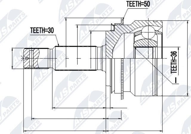 - Liczba zębów, pierścień ABS : 50