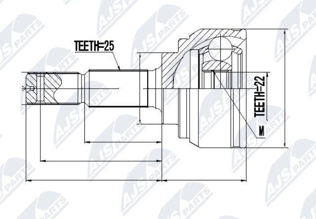 - Uzębienie zewnętrzne od strony koła : 25