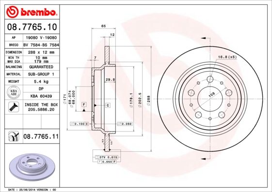 - Typ tarczy hamulcowej : pełny