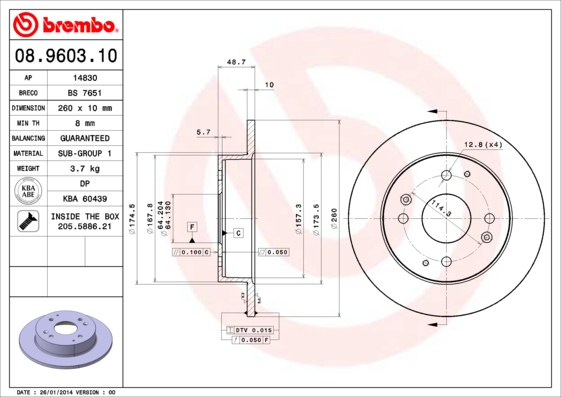 - Grubość tarczy hamulcowej [mm] : 10