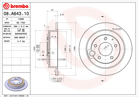- średnica zewnętrzna [mm] : 286