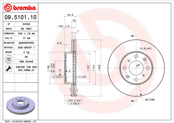 - Typ tarczy hamulcowej : z wentylacją wewnętrzną