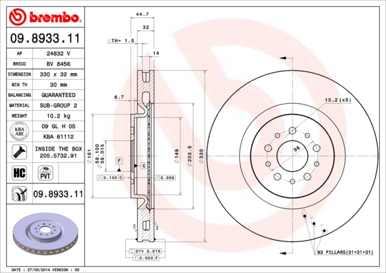 - Grubość tarczy hamulcowej [mm] : 32