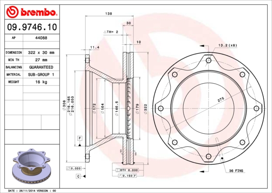 - średnica zewnętrzna [mm] : 322