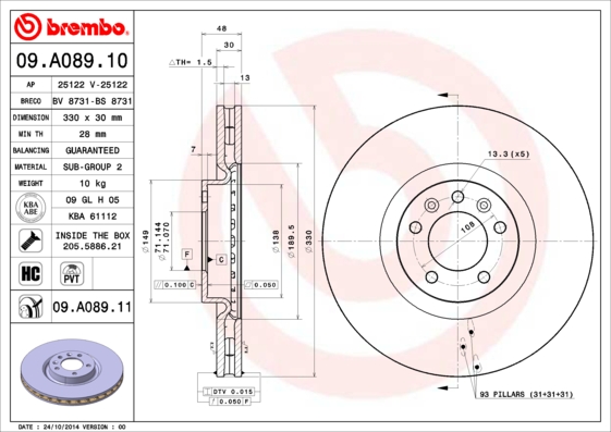 - Typ tarczy hamulcowej : z wentylacją wewnętrzną