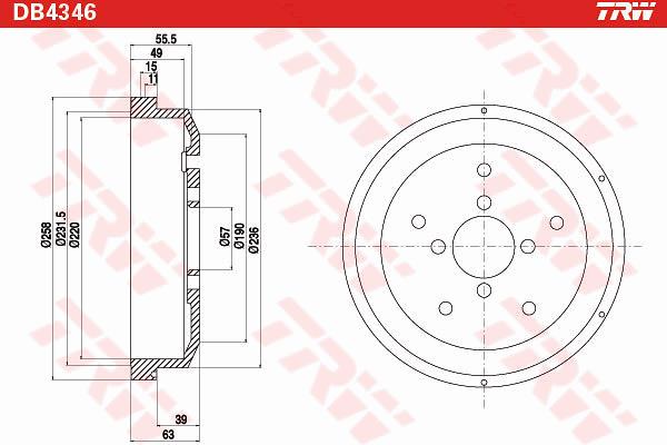 - Średnica zewnętrzna bębna hamulca [mm] : 258