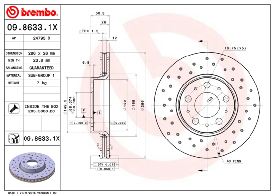 - Typ tarczy hamulcowej : perforowany / wentylowany wewnętrznie