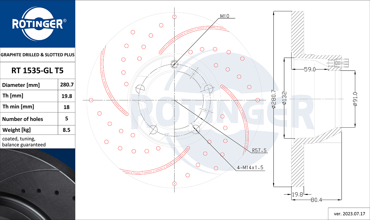 - Typ tarczy hamulcowej : perforowany