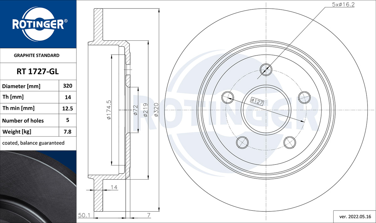 - Grubość tarczy hamulcowej [mm] : 14