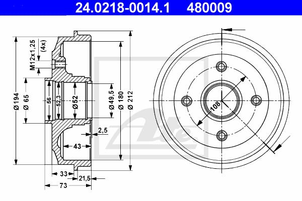 - Całkowita wysokość bębna hamulca [mm] : 73,0