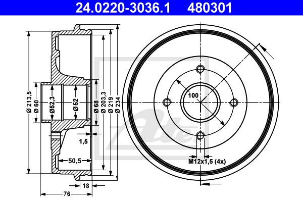 Całkowita wysokość bębna hamulca [mm] :