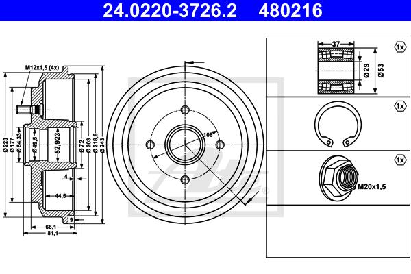 - Średnica zewnętrzna bębna hamulca [mm] : 243,0