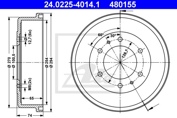 - Całkowita wysokość bębna hamulca [mm] : 74,0
