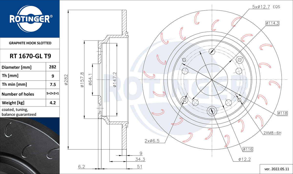 - Grubość tarczy hamulcowej [mm] : 9
