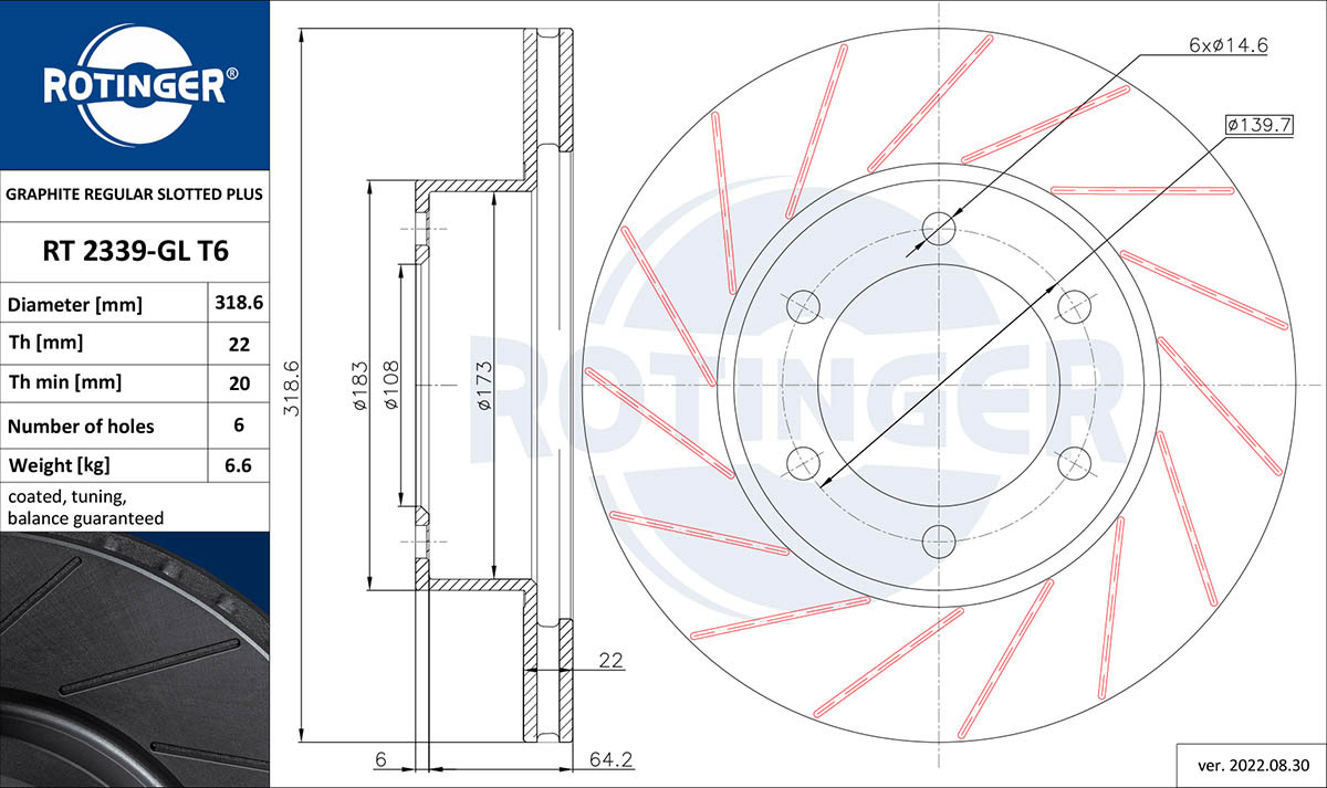 - Grubość tarczy hamulcowej [mm] : 22